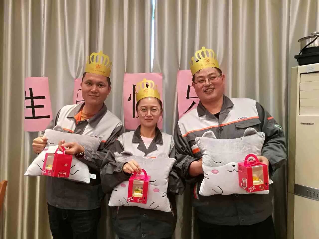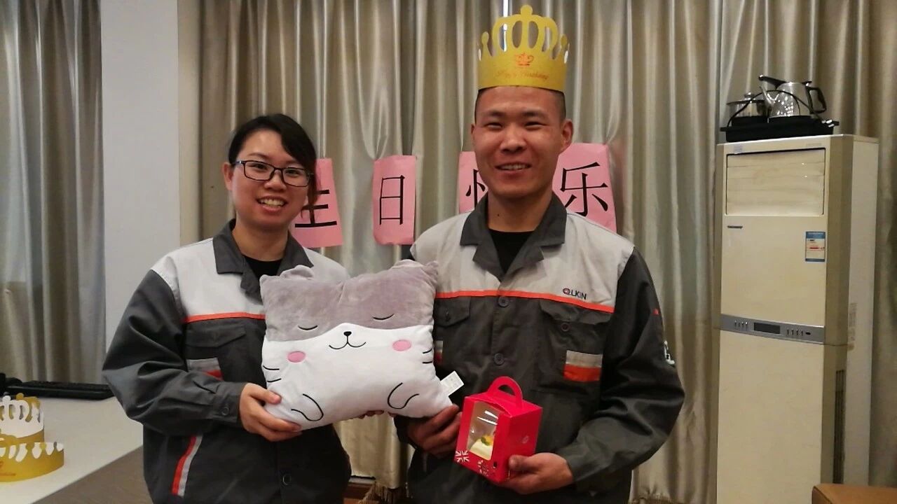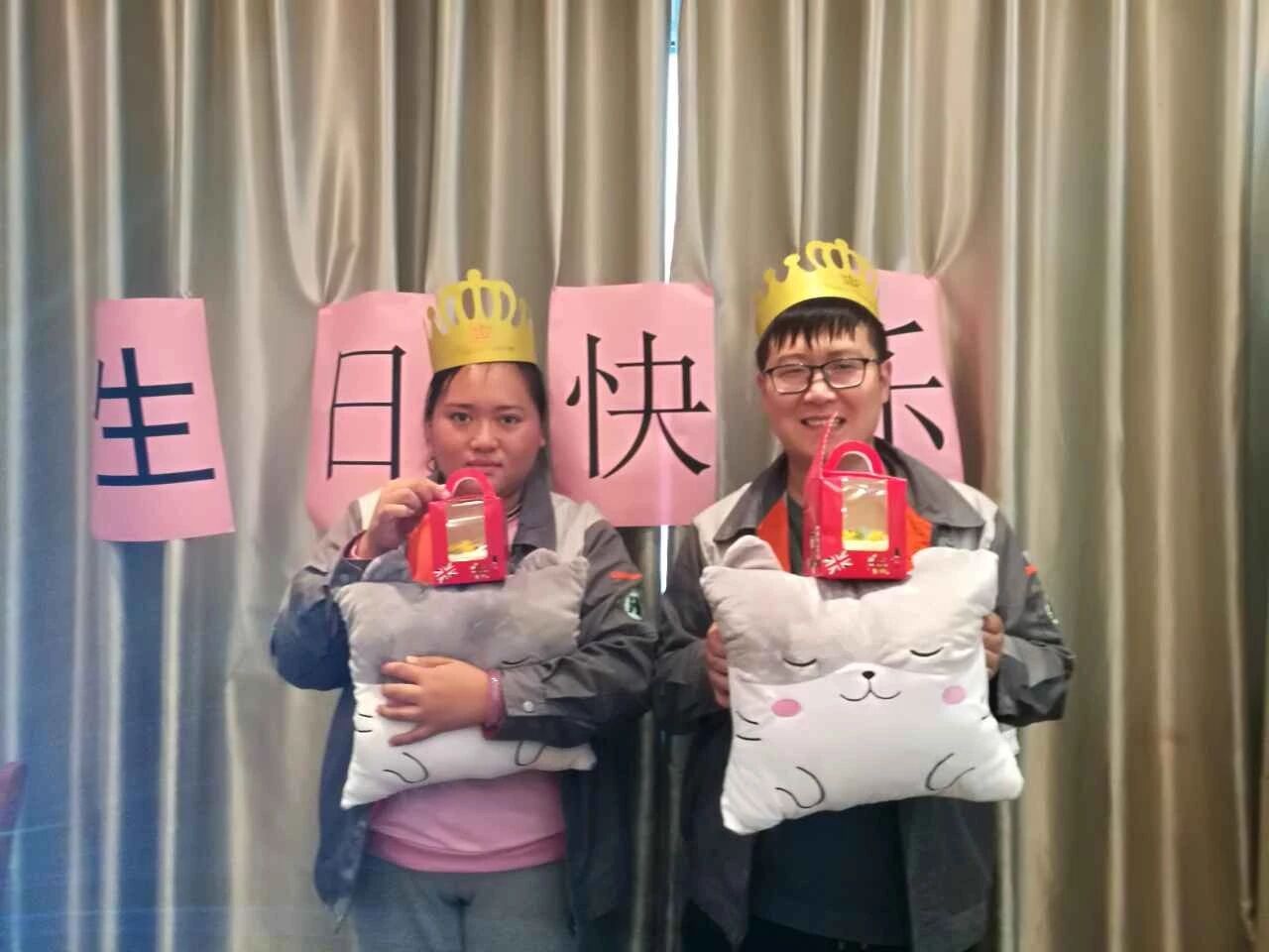 在一片欢声笑语中,生日会拉开了序幕,雄狮总助张丽娟张总在台前对寿星们表示了最衷心的祝福,人事邵方芳邵主任带领大家一点蜡烛,唱生日歌,把气氛推向最高潮。可爱的抱枕搭配着美味的蛋糕,映衬在求精家人的眼眸之中,幸福的笑容洋溢在脸上,很是开心。